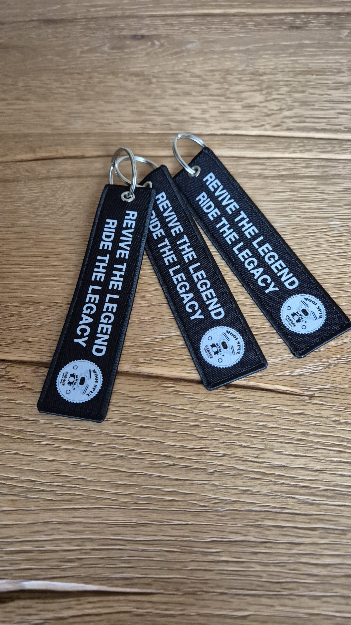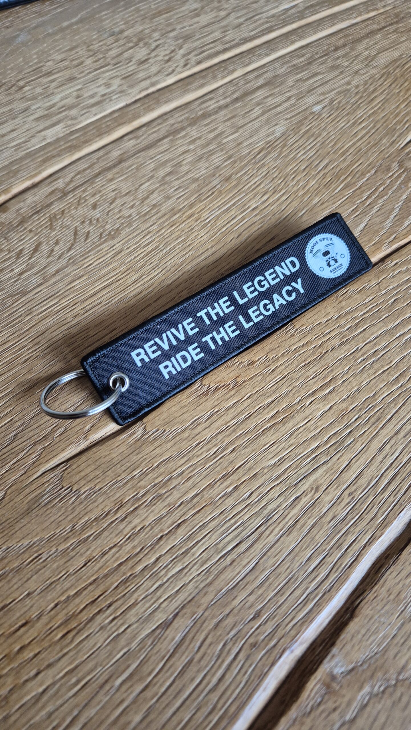 Met de tekst “Revive the Legend, Ride the Legacy” laat je in één oogopslag zien waar jouw passie ligt. Perfect voor je motorsleutel, projecten in de garage, of gewoon als tof accessoire aan je tas of jas.